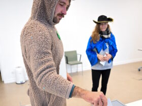 Γερμανοί με αποκριάτικες στολές ψηφίζουν στην Κολωνία στις εκλογές / REUTERS/Jana Rodenbusch ...