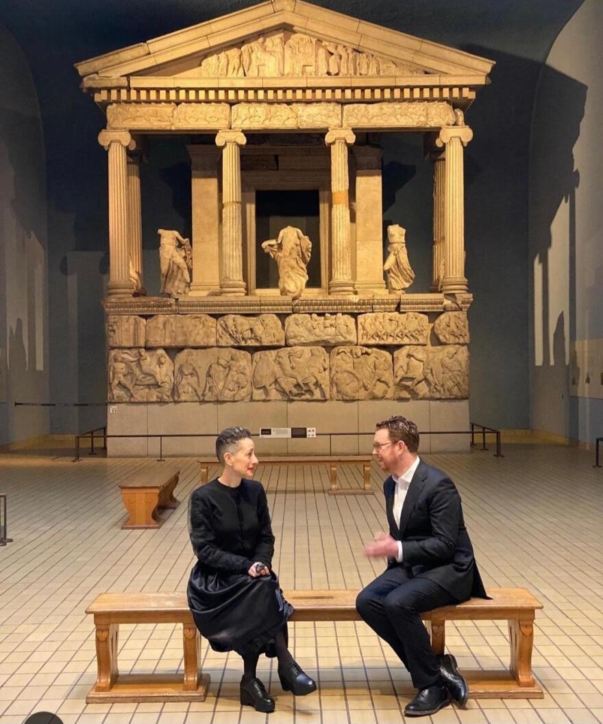 H Λιβανέζα αρχιτέκτονας Lina Ghotmeh με τον διευθυντή του Βρετανικού Μουσείου Νίκολας Κάλιναν