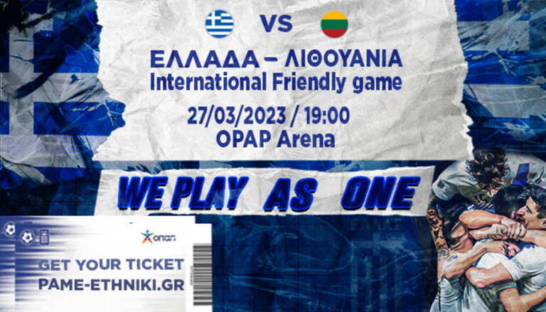 Όπως ενημέρωσε και τη ΕΠΟ το μεσημέρι της Τρίτης (21.03.2023) “… αρχίζει από σήμερα η διάθεση των εισιτηρίων για τον φιλικό αγώνα της Εθνικής Ομάδας με τη Λιθουανία (27/03/20223, 19:00). Αγοράστε μόνο ηλεκτρονικά, γρήγορα και απλά, το εισιτήριό σας και υποστηρίξτε την Εθνική Ομάδα, που θα παίξει για πρώτη φορά στη νέα της έδρα, την OPAP Arena.