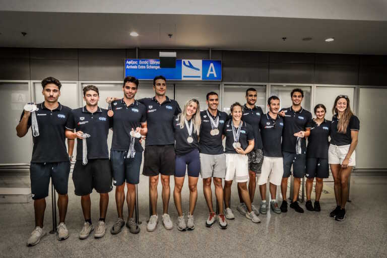Πανηγυρική ατμόσφαιρα και “λάμψη” μεταλλίων το απόγευμα της Δευτέρας (24.06.2024) στο αεροδρόμιο “Ελευθέριος Βενιζέλος”, καθώς επέστρεψε στην Ελλάδα το μεγαλύτερο μέρος της αποστολής που θριάμβευσε στο Ευρωπαϊκό Πρωτάθλημα κολύμβησης του Βελιγραδίου.