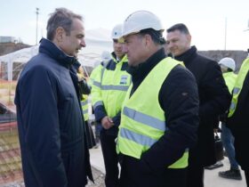 Ο Κυριάκος Μητσοτάκης με τον Άδωνι Γεωργιάδη στο εργοτάξιο του νέου νοσοκομείου Παίδων στη Θεσσαλονίκη ...