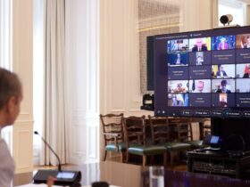 Ο Κυριάκος Μητσοτάκης μιλά στη σύνοδο του ΕΛΚ / Γραφείο Τύπου πρωθυπουργού ...