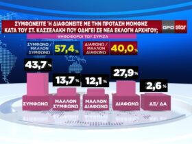 Όσον αφορά τις ηλικιακές ομάδες αυτή των 17-29 ετών, που είναι και οι άμεσα ενδιαφερόμενοι, είναι κατά σε ποσοστό 54,5% και υπέρ σε ποσοστό 39%.