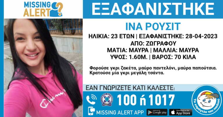 Όπως ανακοίνωσε το «Χαμόγελο του Παιδιού» για την εξαφάνιση, «στις 28/04/2023, πρωινές ώρες, η Ίνα Ρουσίτ, 23 ετών εξαφανίστηκε από την περιοχή Ζωγράφου, στην Αθήνα.