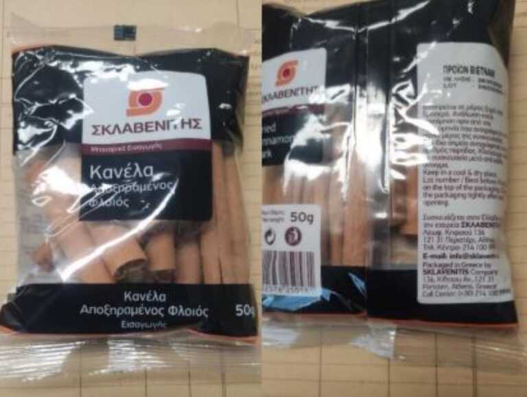 Συγκεκριμένα πρόκειται για το προϊόν με ονομασία πώλησης «Κανέλα-Αποξηραμένος φλοιός και εμπορική ονομασία “Σκλαβενίτης”», σε συσκευασία των 50,0g, με αριθμό παρτίδας Lot 2405300840 και ημερομηνία ανάλωσης κατά προτίμηση πριν από 28/05/2026.