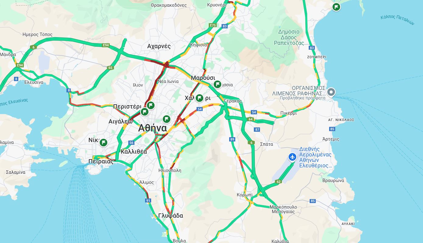 Παράλληλα, αυξημένη κίνηση παρατηρείται και στη Λ. Μεσογείων και στη Λ. Κατεχάκη στο ρεύμα προς Ηλιούπολη.