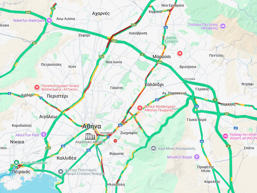 Άμεση ενημέρωση για την κίνηση στους κεντρικούς δρόμους της Αττικής, τις καθυστερήσεις στην κυκλοφορία των οχημάτων, το μποτιλιάρισμα, τα τροχαία.