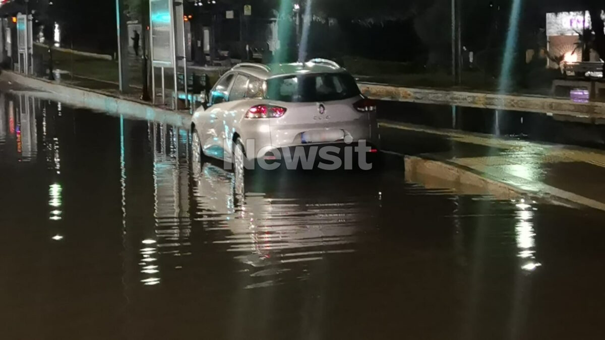 Προβλήματα εντοπίζονται και στη λεωφόρο Καραμανλή, προς Πάρνηθα, λόγω συσσώρευσης νερού στους δρόμους.