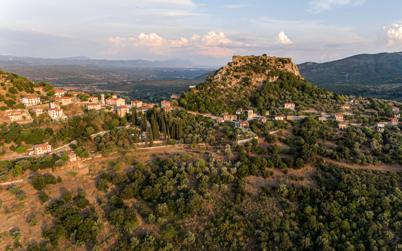 Η θέα από το κάστρο προς την πεδιάδα της Μεγαλόπολης κόβει την ανάσα.