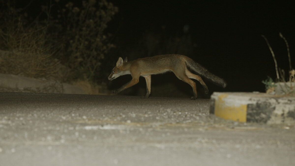 Σε βίντεο που έχουν τραβήξει τα λιγοστά άτομα που ήταν εκείνη την ώρα στον χώρο φαίνεται η αλεπού να τρέχει και να κάνει «πιρουέτες» στο χορτάρι.
