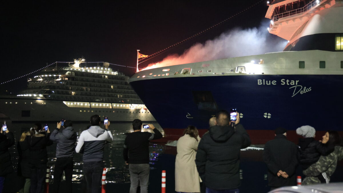 Tο πρώτο πλοίο που μπήκε στο λιμάνι του Πειραιά για το 2025, λίγα λεπτά μετά την αλλαγή του χρόνου ήταν Blue Star Delos.