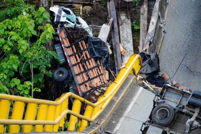 Οχήματα, ανάμεσά τους τρία της αστυνομίας της Κολομβίας και φορτηγό δημόσιας χρήσης, έπεσαν στο κενό όταν ξαφνικά κατέρρευσε τμήμα της γέφυρας που συνδέει την Κινδίο και τη Βάγιε ντελ Κάουκα περνώντας πάνω από τον ποταμό Λα Βιέχα.