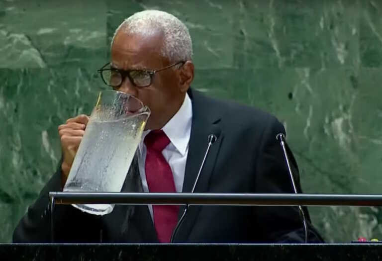 Όπως φαίνεται στο βίντεο, που έγινε viral, o Edgard Leblanc Fils, ο μεταβατικός πρόεδρος της Αϊτής, θέλησε να πιει λίγο νερό κατά τη διάρκεια της ομιλίας του στον ΟΗΕ.