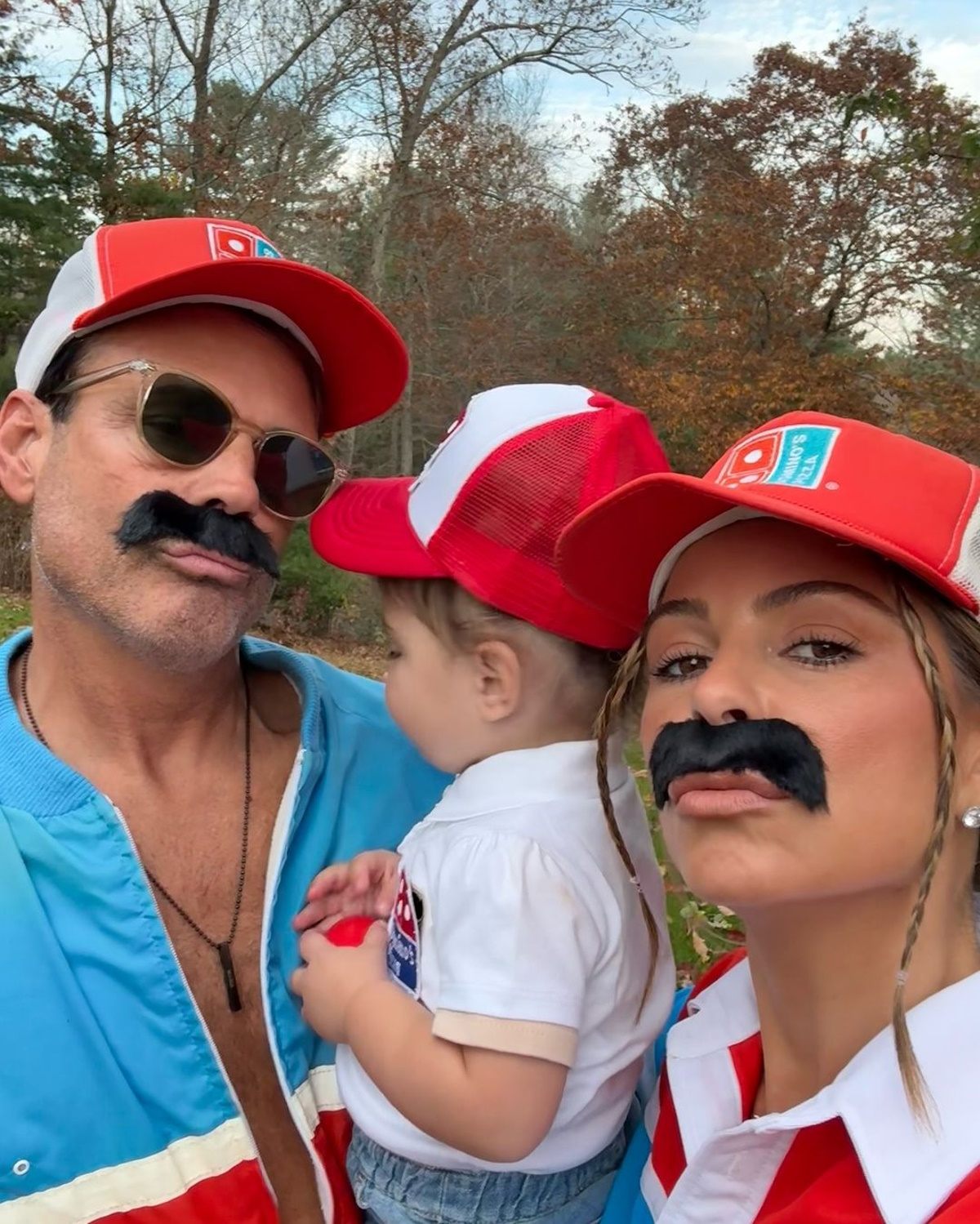 «Ω ναι το κάναμε….. Ντυθήκαμε σαν vintage υπάλληλοι της Dominos. Το να προσπαθήσουμε να πείσουμε την Αθηνά να φορέσει το μουστάκι και το καπέλο της ήταν μια πρόκληση ως απελπισμένοι γονείς, αλλά χρειαζόμασταν πραγματικά τη φωτογραφία. Καλές Απόκριες σε όλους», έγραψε στη λεζάντα της ανάρτησης.