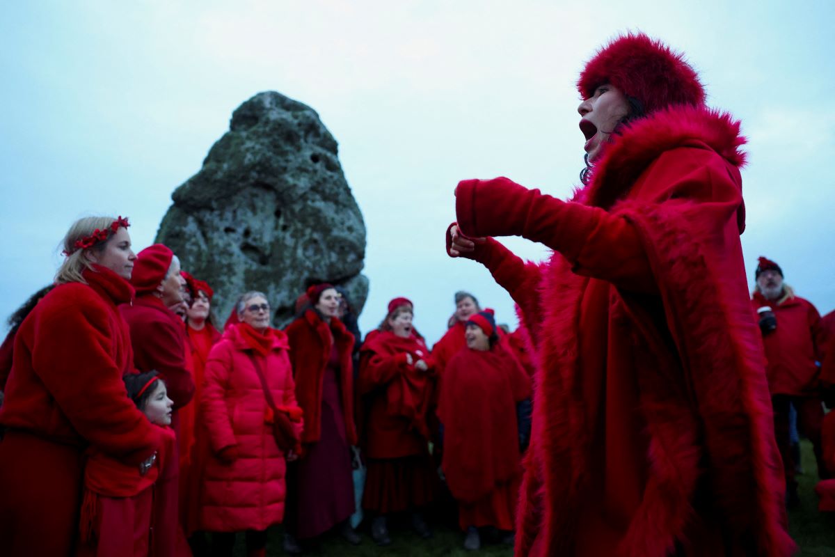 Η συγκέντρωση έγινε στον μεγαλιθικό κύκλο ηλικίας 5.000 ετών στο Wiltshire της Αγγλίας, στο Ηνωμένο Βασίλειο, για να δουν από κοντά τις πρώτες ακτίνες του ήλιου να διαπερνούν τις γιγάντιες πέτρες που αποτελούν ένα από τα πιο διάσημα προϊστορικά μνημεία του κόσμου.