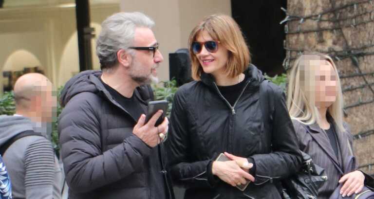 Η Άννα Μαρία Παπαχαραλάμπους και ο Φάνης απαθανατίστηκαν από τον φωτογραφικό φακό, χωρίς τα παιδιά τους, σε μια βόλτα τους στο κέντρο της πόλης.