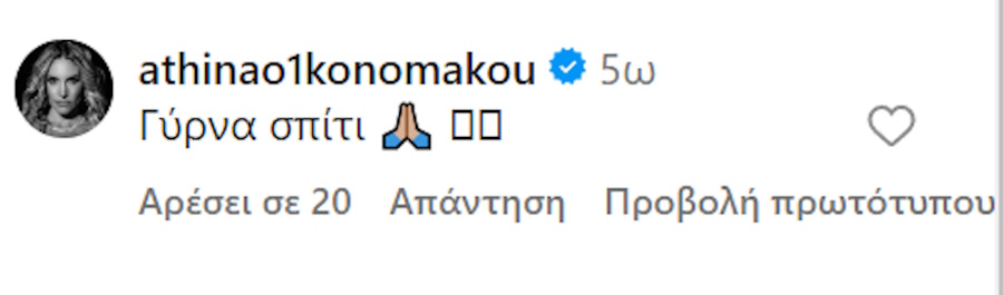 «Πηγαίνω σπίτι σύντομα με τόσες πολύτιμες αναμνήσεις!», έγραψε μεταξύ άλλων στη λεζάντα της ανάρτησής του και στη συνέχεια έκανε tag την Αθηνά Οικονομάκου ενημερώνοντάς την πως βρίσκεται ήδη στον δρόμο.