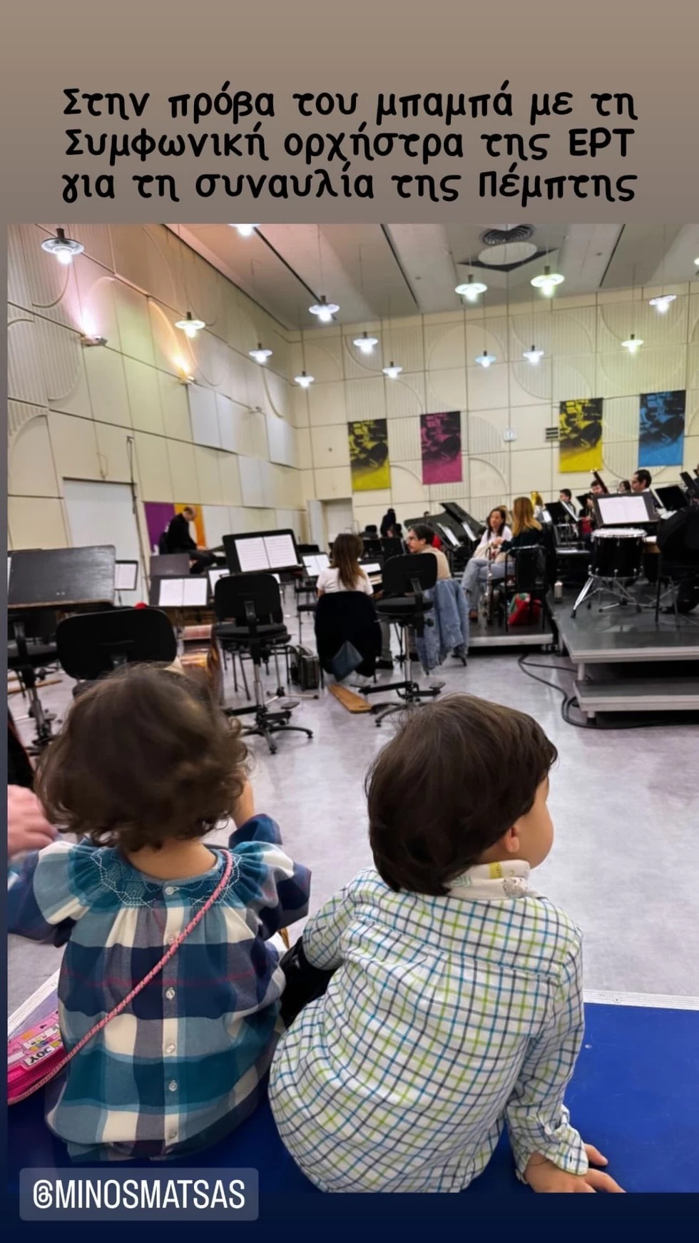 Πριν από λίγους μήνες είχε δημοσιεύσει φωτογραφία, με τα δίδυμα παιδιά της, να παρακολουθούν την πρόβα του πατέρα τους Μίνωα Μάτσα. «Στην πρόβα του μπαμπά με τη συμφωνική ορχήστρα της ΕΡΤ για τη συναυλία της Πέμπτης», είχε γράψει η Όλγα Κεφαλογιάννη στη φωτογραφία των διδύμων.