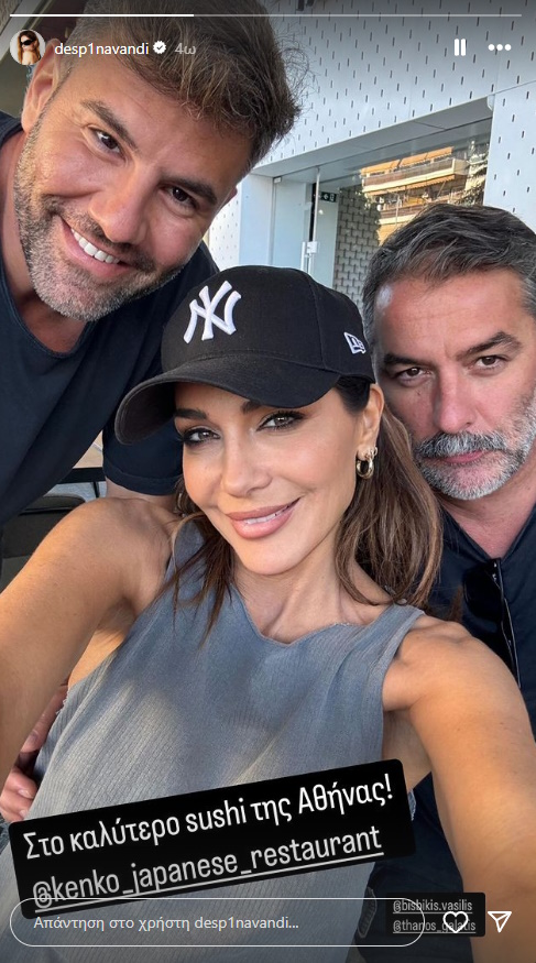 Το ζευγάρι απόλαυσε συνταγές σούσι, απευθείας από την Ιαπωνία. Η Δέσποινα Βανδή ενημέρωσε τους folowers της για την έξοδό της με τον Βασίλη Μπισμπίκη δημοσιεύοντας μία φωτογραφία.