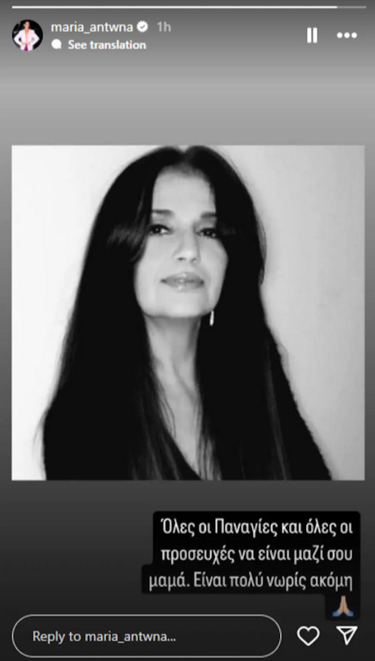 Η Μαρία Αντωνά βρίσκεται στο πλευρό της μητέρας της σε αυτή τη δύσκολη στιγμή. Παρόλα αυτά, δεν θέλησε να μοιραστεί περισσότερες λεπτομέρειες για την κατάσταση.