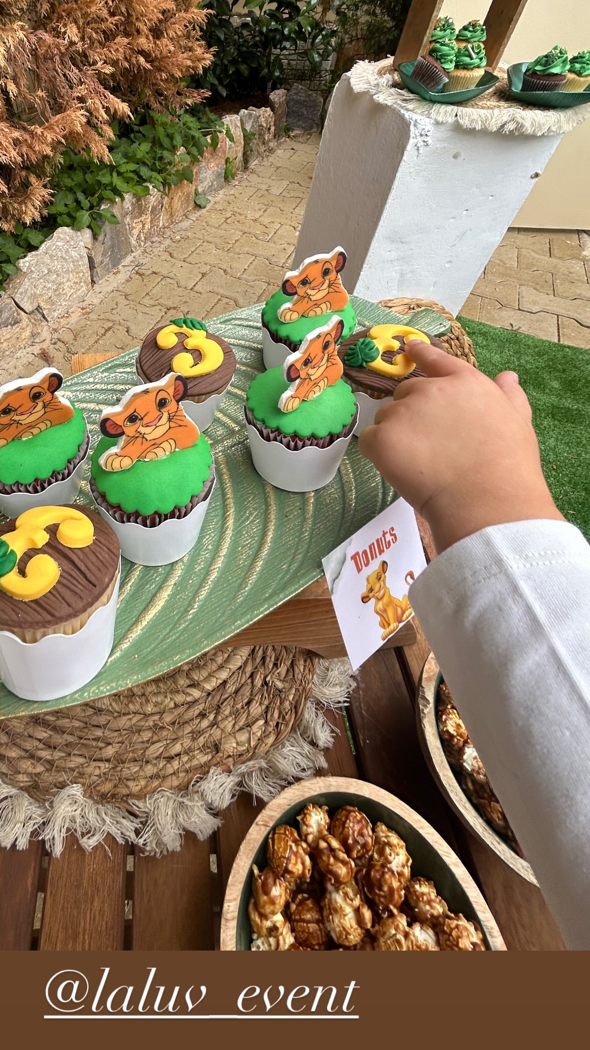 Η τούρτα του μικρού Βύρων είχε τον ίδιο αριθμό ορόφων με την ηλικία του, δηλαδή 3, ενώ πάνω ήταν διακοσμημένοι οι αγαπημένοι ήρωες της Disney, από το Lion King, Τιμόν, Πούμπα και Σίμπα.