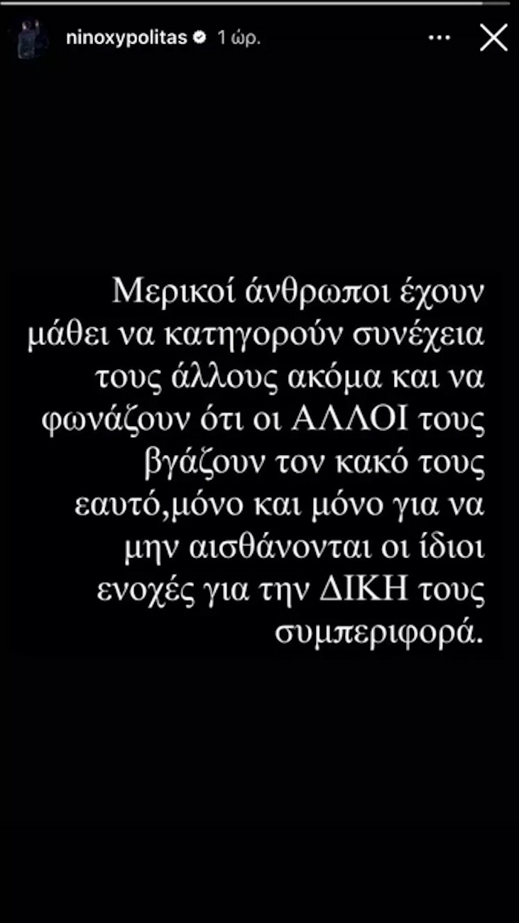Χαρακτηριστικά ο Νίνο έγραψε: «Μερικοί άνθρωποι έχουν μάθει να κατηγορούν συνέχεια τους άλλους, ακόμα και να φωνάζουν ότι οι ΆΛΛΟΙ τους βγάζουν τον κακό τους εαυτό, μόνο και μόνο για να μην αισθάνονται οι ίδιοι ενοχές για τη ΔΙΚΗ τους συμπεριφορά».