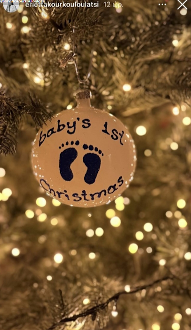 Η Εριέττα Κούρκουλου, μάλιστα, δημοσίευσε ένα ξεχωριστό στολίδι που κοσμεί φέτος το χριστουγεννιάτικο δέντρο της, το οποίο είναι μια μπάλα με δυο μικρά πατουσάκια, τα οποία συνοδεύονται με τη φράση: «baby’s 1st Christmas».