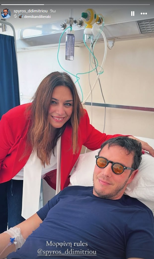 Λίγες ώρες μετά το τροχαίο, ο Σπύρος Δημητρίου ανέβασε μία φωτογραφία μέσα από το νοσοκομείο στον προσωπικό του λογαριασμό στο Instagram.