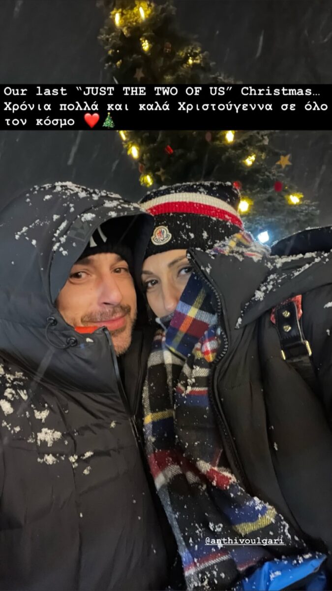 «Our last “just the two of us” Christmas. Χρόνια πολλά και καλά Χριστούγεννα σε όλον τον κόσμο», έγραψε η Ανθή Βούλγαρη πάνω στη φωτογραφία, εννοώντας πως αυτά είναι τα τελευταία Χριστούγεννα που η οικογένειά της θα αποτελείται μόνο από αυτούς τους δύο.