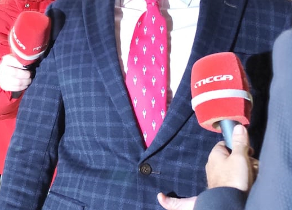 Όλα αυτά, φορώντας μια κόκκινη γραβάτα, που στο μοτίβο της είχε… τσολιάδες.