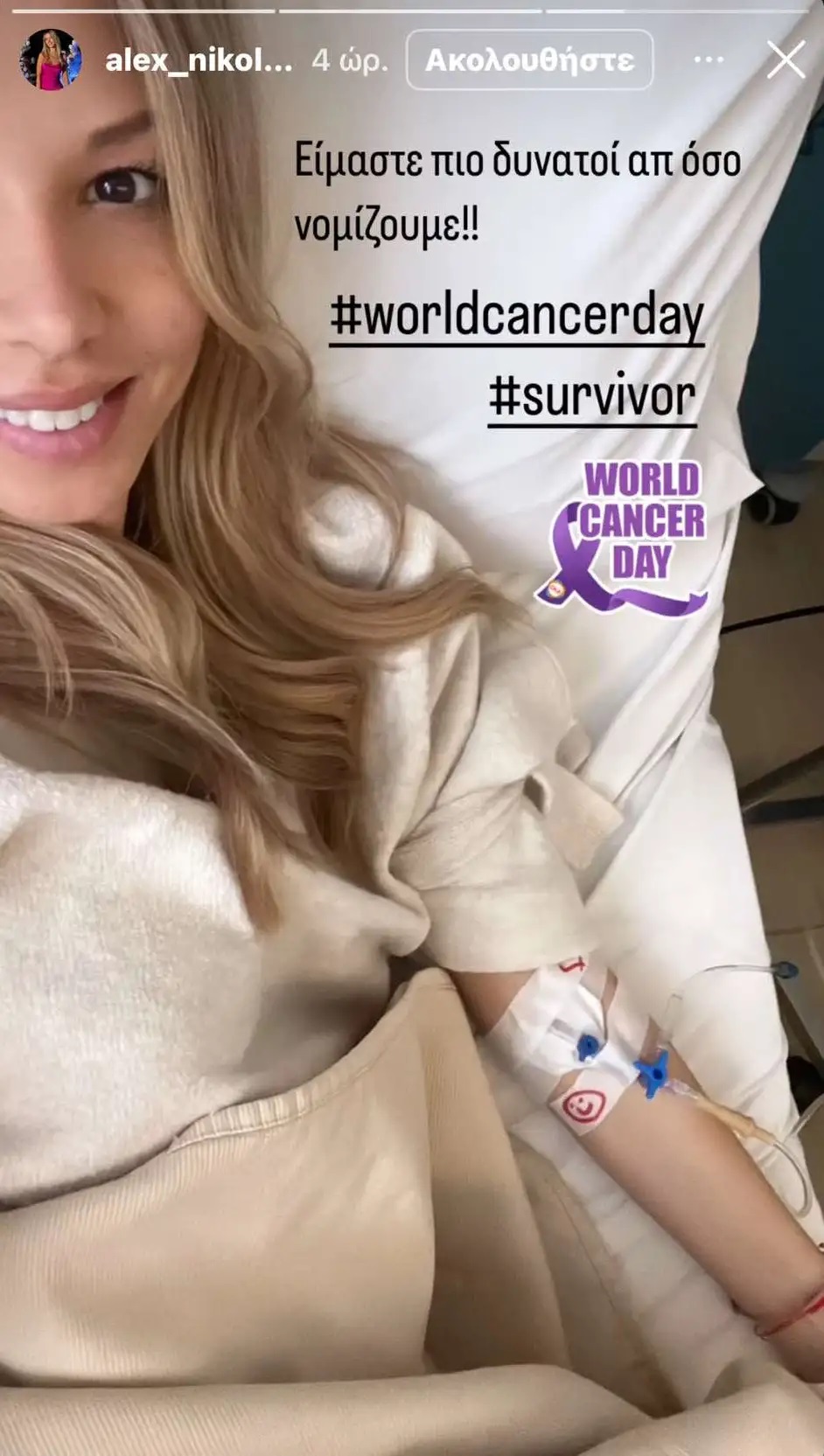 Το δικό της μήνυμα ενθάρρυνσης για όσους νοσούν με καρκίνο, θέλησε να στείλει η σύντροφος του Ντέμη Νικολαΐδη, Αλεξάνδρα Νικολαΐδου.
