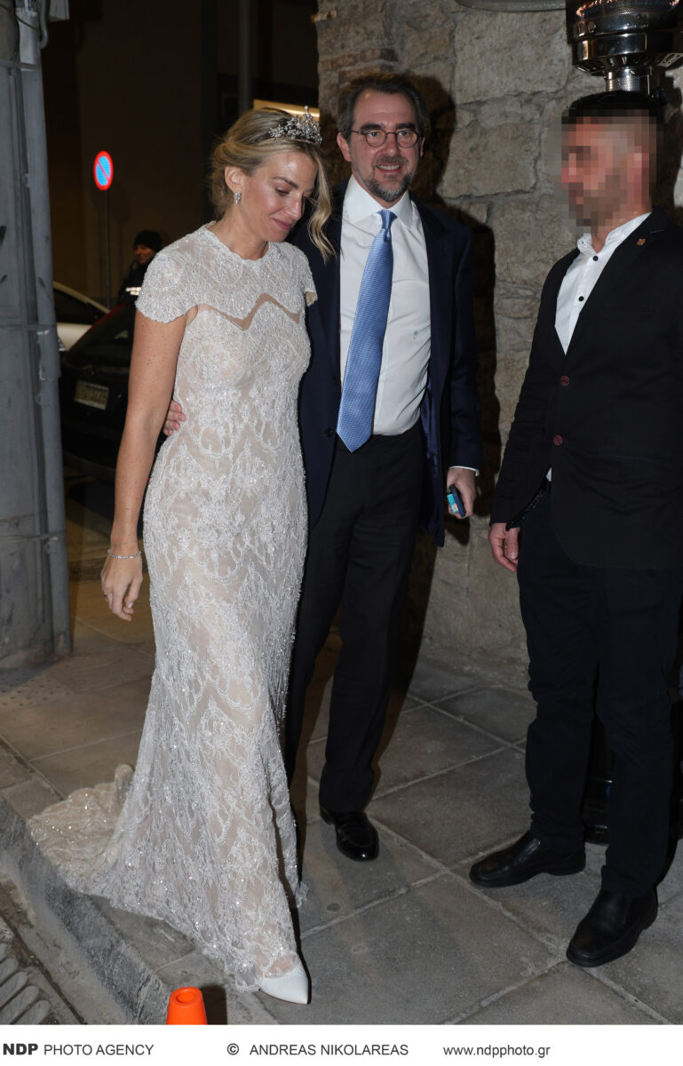 Μετά την εντυπωσιακή τελετή στον Ιερό Ναό Αγίου Νικολάου στην Πλάκα, Νικόλαος Ντε Γκρες και Χρυσή Βαρδινογιάννη αποχώρησαν από το σημείο με το αυτοκίνητό τους, με προορισμό τον Πειραιά, την περιοχή που είχαν προγραμματίσει την δεξίωση του γάμου τους.