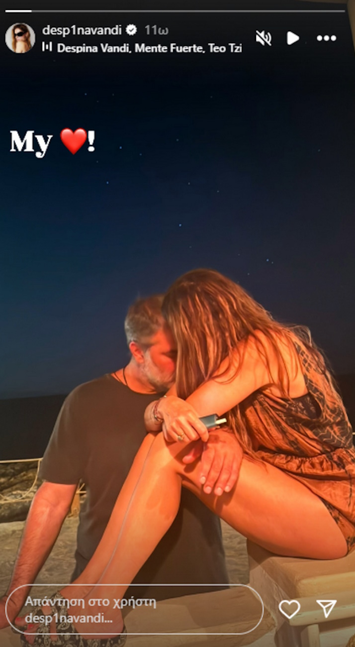Η Δέσποινα Βανδή δημοσίευσε στον προσωπικό της λογαριασμό στο Instagram ένα στιγμιότυπο με τον Βασίλη Μπισμπίκη. Σε αυτό φαίνεται να κάθεται σε ένα πεζούλι, ενώ δίπλα της είναι ο αγαπημένος της. Πάνω στη φωτογραφία, η τραγουδίστρια έγραψε: «Ο Βαλεντίνος μου».
