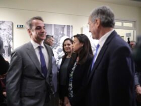 Ο Κυριάκος Μητσοτάκης είχε την ευκαιρία να συνομιλήσει με εργαζόμενους και πελάτες του καταστήματος, αλλά και να βγάλει selfies με όσους του το ζήτησαν.