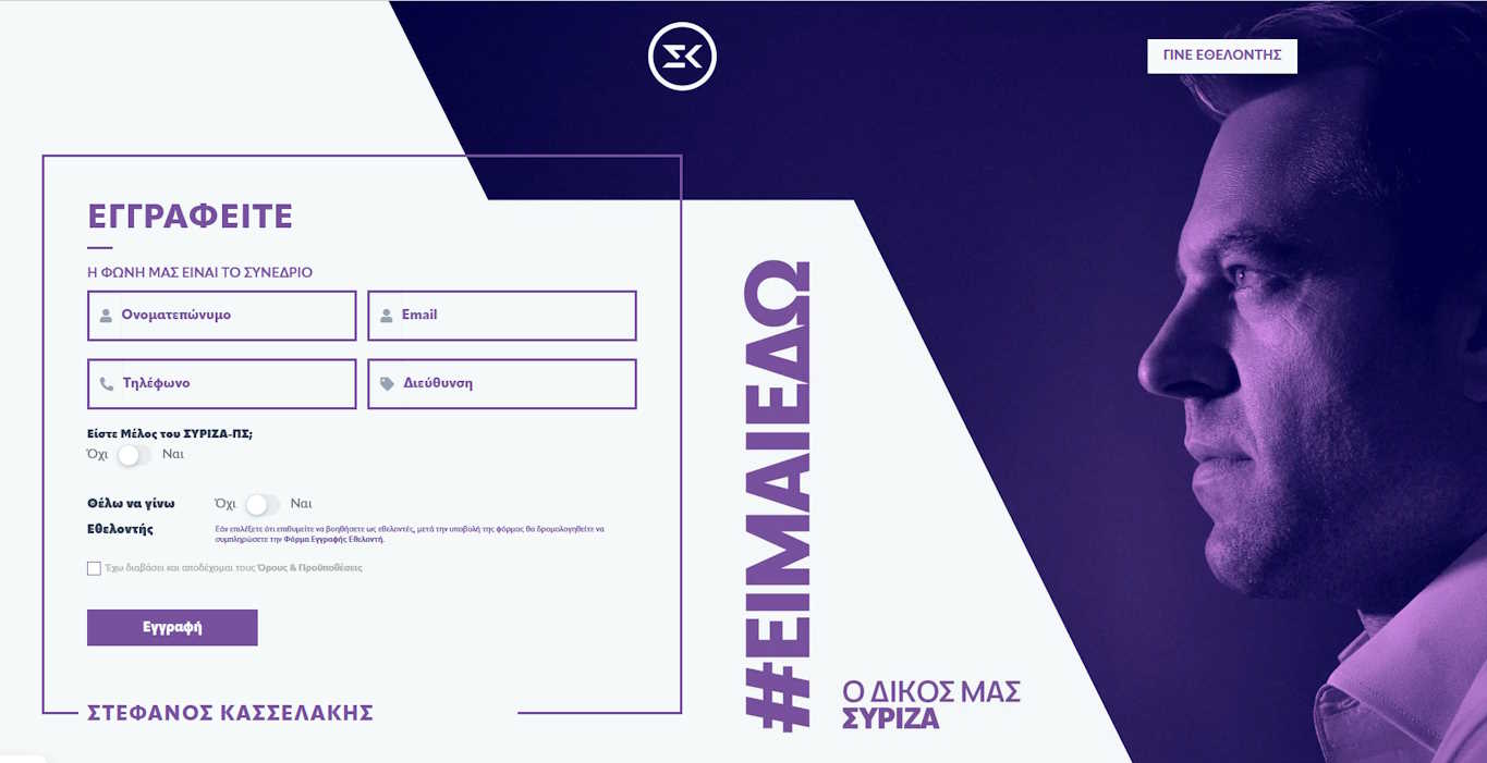 Στο ερωτηματολόγιο της εγγραφής για τον «δικό μας ΣΥΡΙΖΑ» ζητείται ονοματεπώνυμο, email, τηλέφωνο και διεύθυνση.