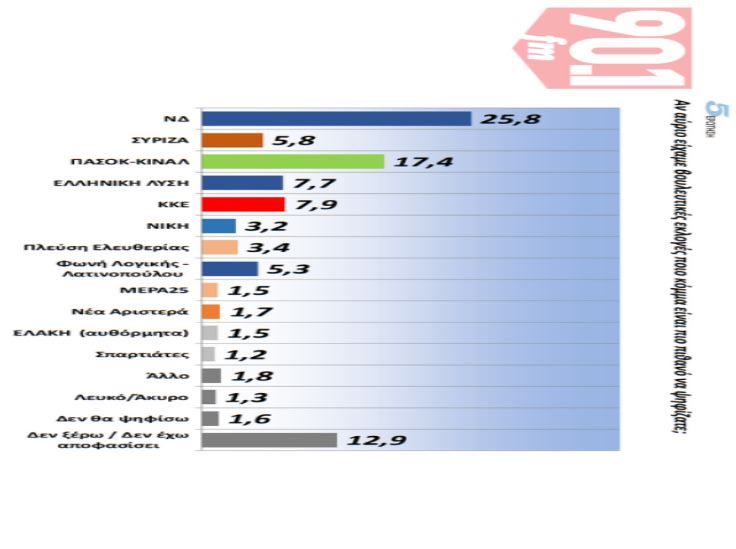 Όπως προκύπτει από τη δημοσκόπηση, ο ΣΥΡΙΖΑ πέφτει πλέον στο 5,8%.