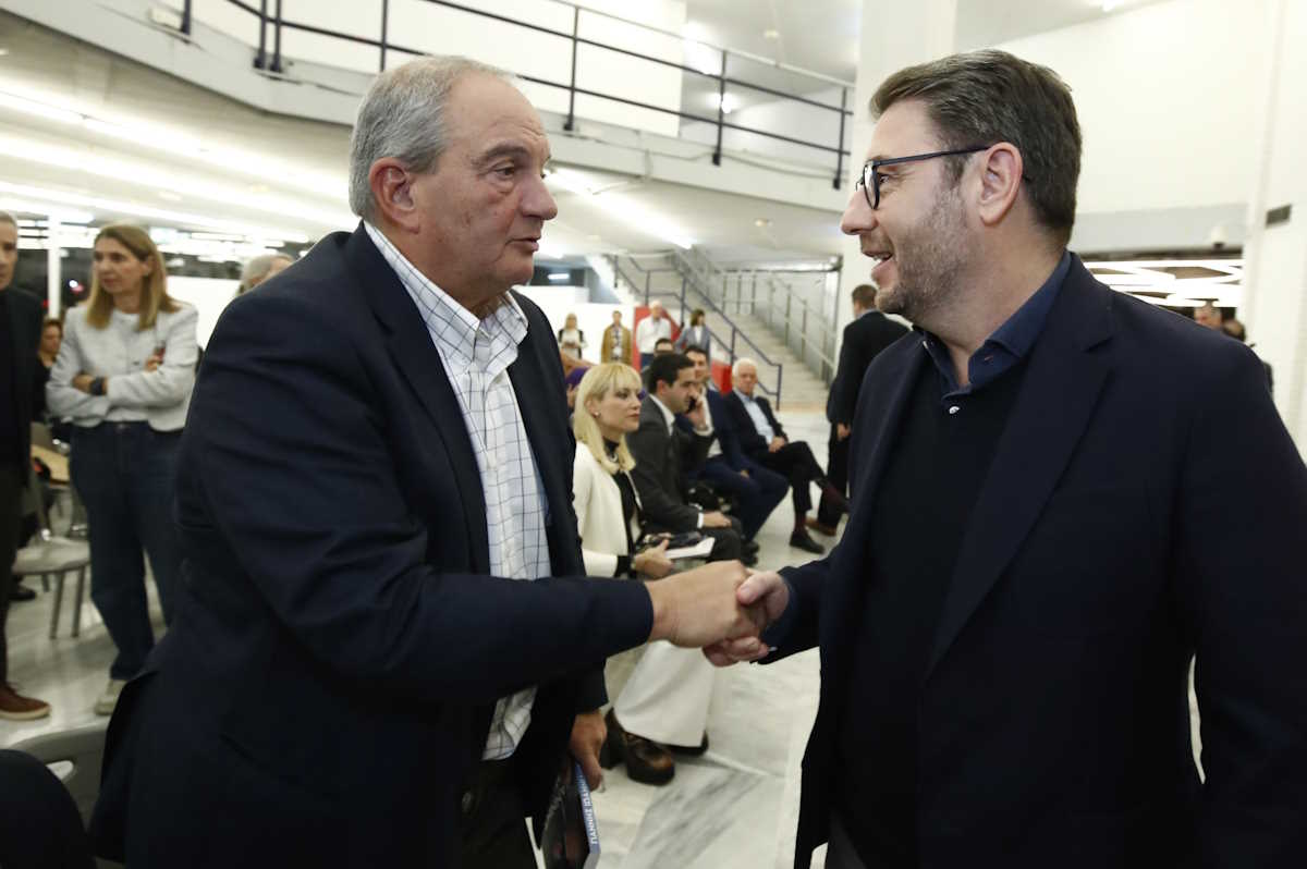 Ο φωτογραφικός φακός απαθανάτισε αρκετές χειραψίες, όπως αυτή που αντάλλαξαν οι κ.κ. Καραμανλής – Ανδρουλάκης.