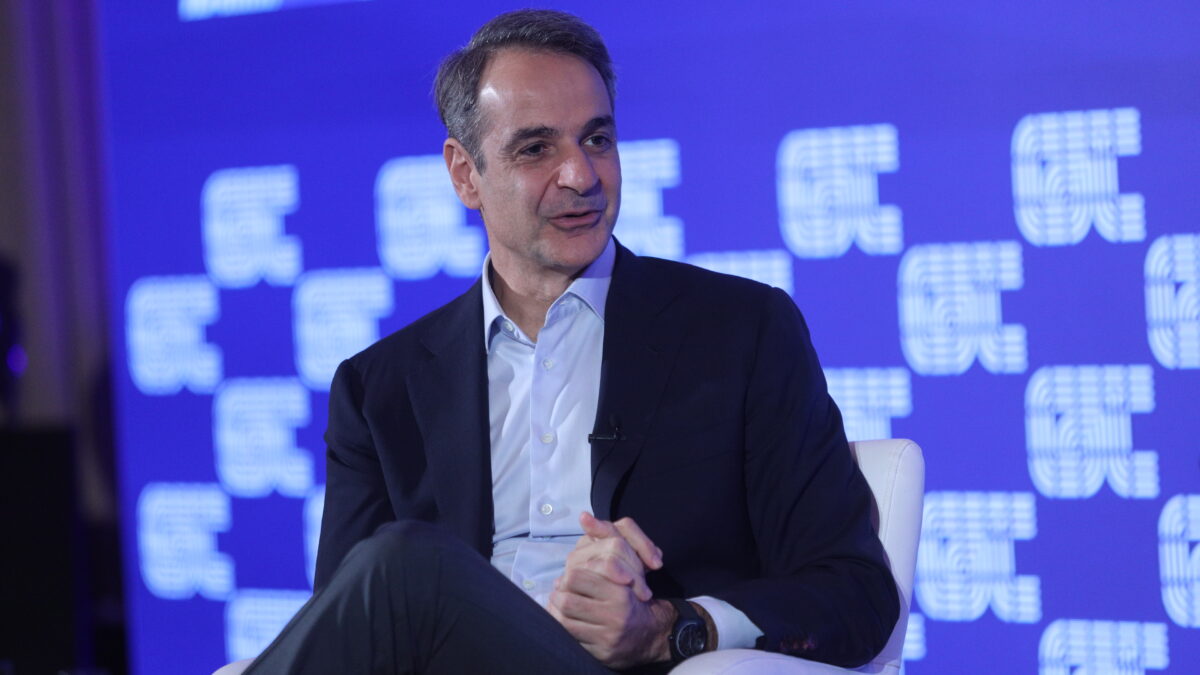 Ο Κυριάκος Μητσοτάκης συζητά με τον Γιάννη Πρετεντέρη στο πλαίσιο του συνεδρίου που διοργανώνει η εφημερίδα «Το Βήμα» σε συνεργασία με το Συμβούλιο Διεθνών Σχέσεων και το Οικονομικό Φόρουμ των Δελφών με τίτλο «Μεταπολίτευση 1974-2024: 50 Χρόνια Ελληνική Εξωτερική Πολιτική».