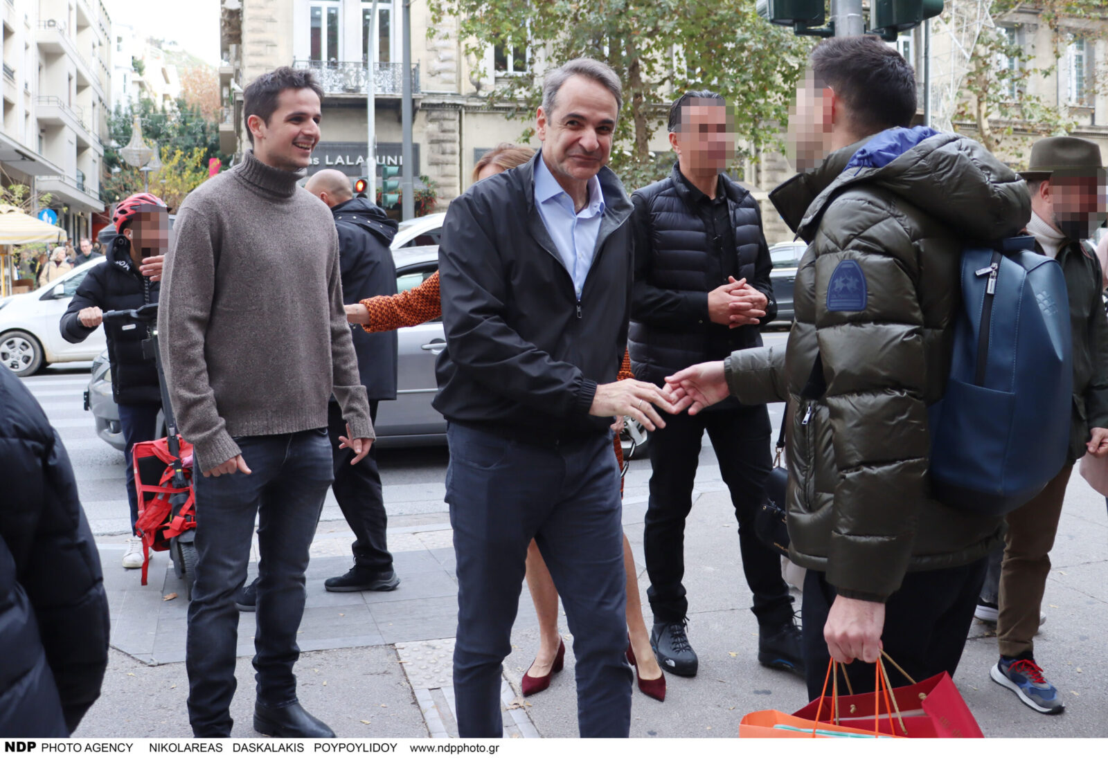 Ο πρωθυπουργός απόλαυσε την στολισμένη Αθήνα μαζί με τον μοναχογιό του, τον 26χρονο Κωνσταντίνο, ενώ αρκετοί ήταν και οι (ξαφνιασμένοι) πολίτες που έσπευσαν να μιλήσουν μαζί τους.