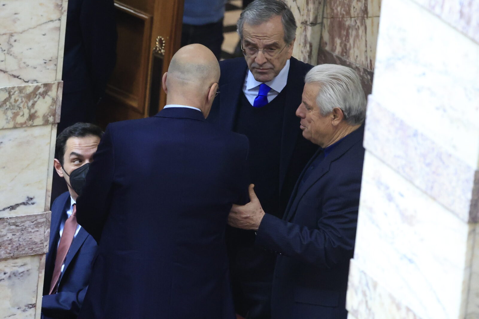 Τα βλέμματα όλων έπεσαν στο πηγαδάκι ανάμεσα στον πρώην πρωθυπουργό Αντώνη Σαμαρά με τον υπουργό Άμυνας, Νίκο Δένδια. Ειδικά αν σκεφτεί κανείς την σκληρή κριτική που ασκεί ο ανεξάρτητος πλέον βουλευτής στην κυβέρνηση ειδικά για τα εθνικά θέματα πολλοί θα ήθελαν να ακούσουν αυτά που έλεγαν οι δυο άνδρες. Στην παρέα προστέθηκε και ο βουλευτής της ΝΔ, Γιώργος Βλάχος.