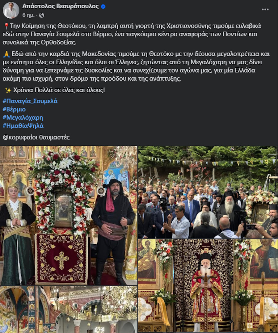 Ανήμερα του 15αύγουστου είχε κάνει μία ανάρτηση από τη γενέτειρά του, τη Βέροια, όπου βρισκόταν.