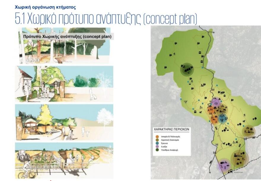 Στις μελέτες αυτές διατηρούνται οι θεσμοθετημένες επιτρεπόμενες χρήσεις γης που ορίζονται από το Προεδρικό Διάταγμα Προστασίας της Πάρνηθας αλλά και οι υφιστάμενες ζώνες προστασίας ενώ τροποποιούνται οι επιτρεπόμενες χρήσεις σε ορισμένες ζώνες που αφορούν στις χρήσεις των κτιρίων του κτήματος τα οποία καλύπτουν συνολικά μια έκταση 15.000 τ.μ.