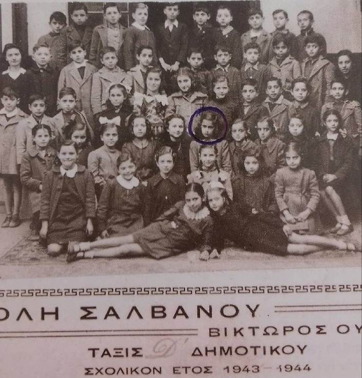 Η Αλίκη σε μια από τις σπάνιες φωτογραφίες της, μαθήτρια στην Δ’ τάξη του Δημοτικού στην Σχολή Σαλβάνου στο κέντρο της Αθήνας την σχολική περίοδο 1943-44.