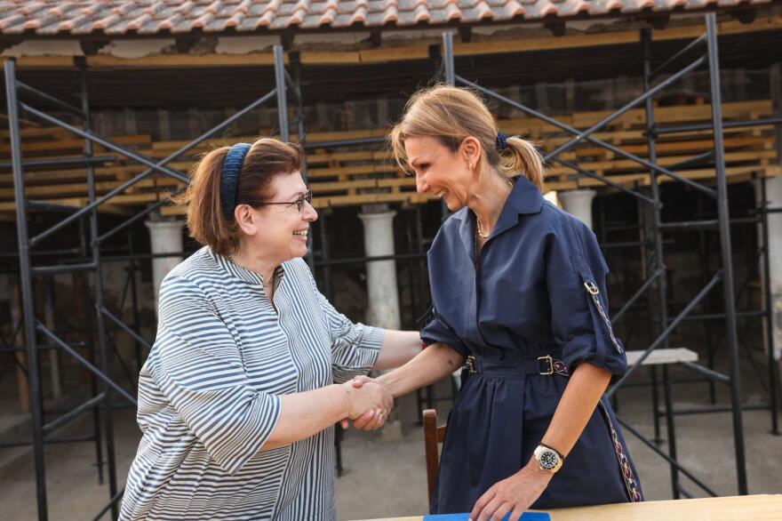 Η Υπουργός Πολιτισμού Λίνα Μενδώνη με την Πρόεδρο της Ένωσης Ελλήνων Εφοπλιστών Μελίνα Τραυλού