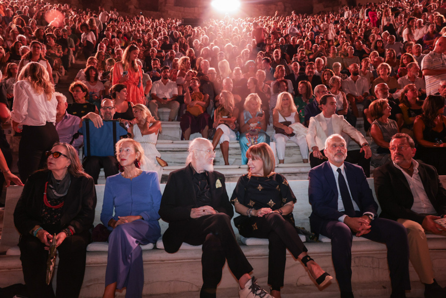 Στις πρώτες σειρές του Ηρωδείου ήταν η Πρόεδρος της Δημοκρατίας Κατερίνα Σακελλαροπούλου – που πρόσφατα απένειμε το παράσημο του Ανώτερου Ταξιάρχη του Τάγματος της Τιμής στον Σταύρο Ξαρχάκο -, ο μουσικοσυνθέτης Διονύσης Σαββόπουλος με τη σύζυγό του Άσπα, η στιχουργός Λίνα Νικολακοπούλου και χιλιάδες ακόμη.