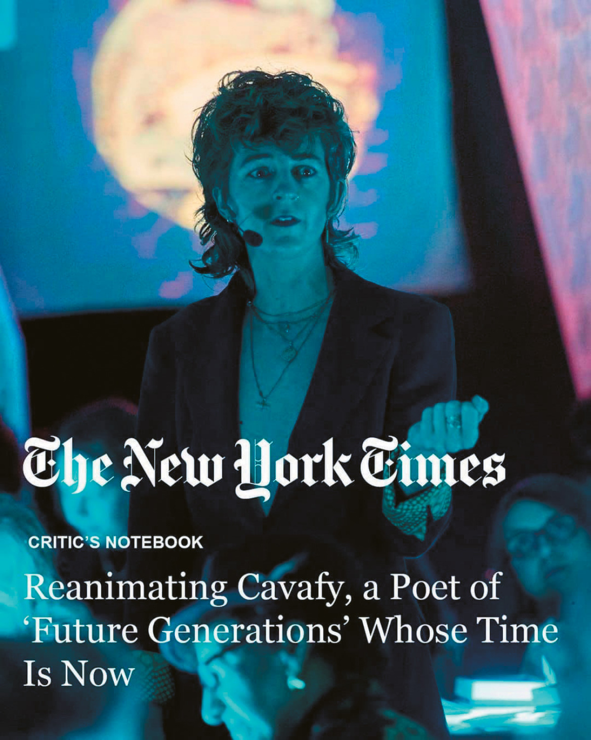 Λόγια που δεν θα ακούγονταν σε κανένα ελληνικό πανεπιστήμιο και σίγουρα από κανέναν περίοπτο καβαφιστή. Είναι η ίδια που την επόμενη μέρα μάς παρουσίασε ένα ολοκληρωμένο έργο με δικούς της στίχους οι οποίοι αναμείχθηκαν μοναδικά με εκείνους του ποιητή και άλλων αντίστοιχου μεγέθους και συνομίλησαν μαζί του, ντυμένους με τη μουσική του Βιγιάι Αγιερ και με τη συνδρομή της εικαστικού Ζούλι Μεχρέτου σε ένα ολοκληρωμένο έργο που έφερε τον ίδιο τίτλο με το φεστιβάλ, «Archive of Desire», στο πολιτιστικό κέντρο και σημείο αναφοράς για τους ανθρώπους της μουσικής και του ήχου, το National Sawdust.