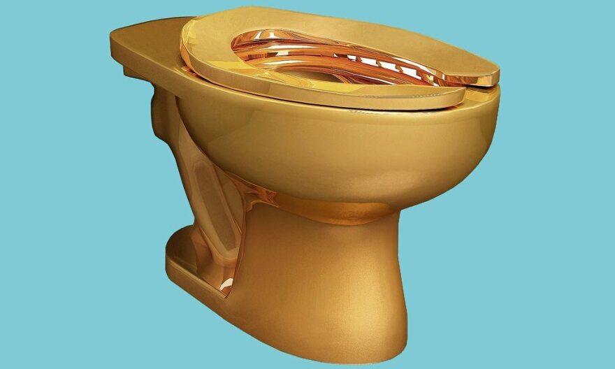 Η χρυσή λεκάνη, εξ ολοκλήρου κατασκευασμένη από 103 κιλά χρυσού 18 καρατίων, είχε εκτεθεί στο μουσείο Γκούγκενχαϊμ στη Νέα Υόρκη και είχε τοποθετηθεί κανονικά στις τουαλέτες του για χρήση!
