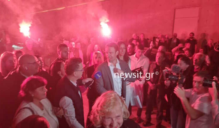 Με κόρνες και καπνογόνα η άφιξη του Στέφανου Κασσελάκη στα εγκαίνια των γραφείων του: «Έχουμε κόμμα, ο λαός θα εκφραστεί»