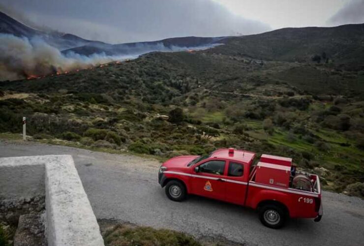 Φωτιά στην Άνδρο, στην περιοχή του Αγίου Πέτρου – Στη μάχη και εναέρια μέσα