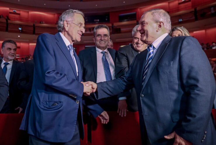 Κοινή εμφάνιση Κώστα Καραμανλή και Αντώνη Σαμαρά σε εκδήλωση του Επαγγελματικού Επιμελητηρίου Αθηνών